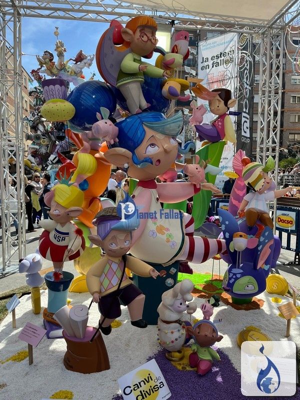 Fallas 2024 Infantiles Fotos de la Falla L’Antiga de Campanar infantil 2024, obra de Ángel Esteban Raúl Llibrer Ángel Esteban, L'Antiga de Campanar Artista: Ángel Esteban Lema: «Canvi de divisa» 4º Premio Sección 5ª