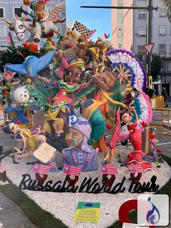 Fallas 2024 Infantiles Fotos de la Falla Pintor Salvador Abril-Peris y Valero infantil 2024, obra de Superarte Raúl Llibrer Pintor Salvador Abril-Peris y Valero, Superarte Artista: Superarte Lema: «Russafa World Tour» 1er Premio Sección 6ª