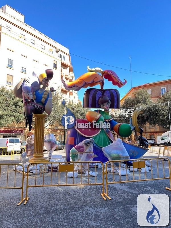 Fallas 2025 Grandes Fotos de la Falla Molinell-Alboraya 2025, obra de Victor Navarro Raúl Llibrer Molinell-Alboraya, Victor Navarro Artista: Victor Navarro Lema: «No em barreges churros en menines» Sección 2ªA Foto hecha durante la plantà.