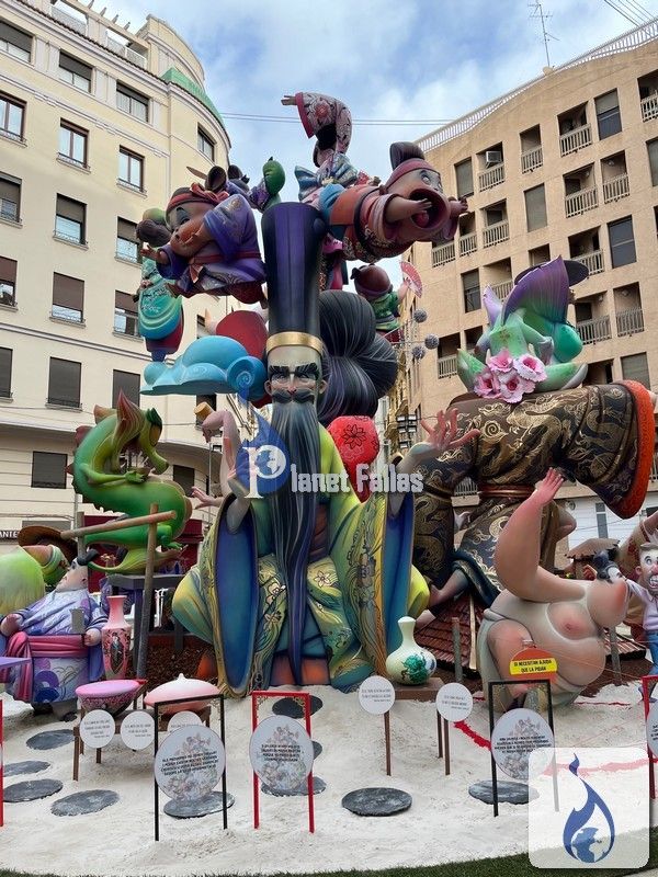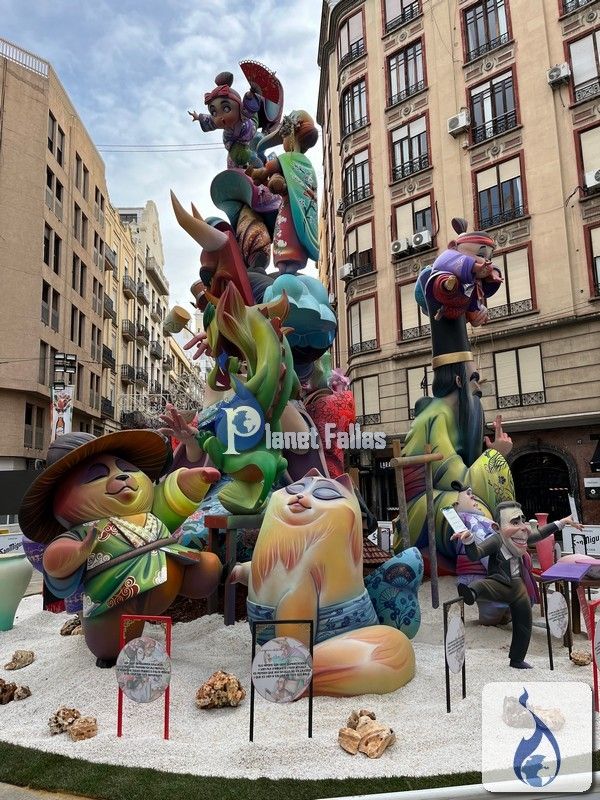 Fallas 2025 Grandes Fotos de la Falla Grabador Esteve-Cirilo Amorós 2025, obra de Paco Giner Raúl Llibrer Grabador Esteve-Cirilo Amorós, Paco Giner Artista: Paco Giner Lema: «Bajo manga» 12º Premio Sección 1ªA