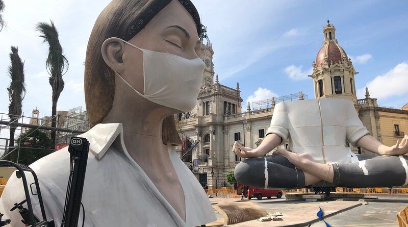 Últimas fotos del 2020 de la Falla Plaza del Ayuntamiento, obra de Manolo Martín, José Ramón Espuig y el diseñador Escif.