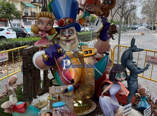 Fotos de la Falla Dama de Elche 2025, obra de Javier Rico y 10º Premio Sección 2ªB.